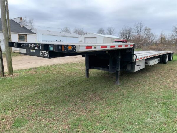 2021 Reitnouer Dropmiser; 53×102; Rear axle slide; 10’8” upper deck, 42’ lower deck; Cali and BC legal in the closed position 40′ kp to the center of the rear axle; 10’2″ axle spacing open, 60″ closed; 25k suspension; Hendrickson Tire Inflation; Inside steel wheel aluminum outer; 255/70R 22.5 Yokohama Tires; Mini coil pack; 30″ kin pin; 3 wood nailers; Double pipe spools; 5 Peterson led lights per side, 3-5-3 rear; Flaps after both axles, mud flap brackets cut out for winch to pass; Automatic dump valve on all axles; Winch track drivers side; 12 winches; 20 6″ oval tiedowns. Empty Weight 10324 lb.
